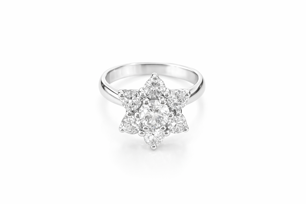Anello a fiore in oro bianco 18 kt con diamanti da 1,80 ct.