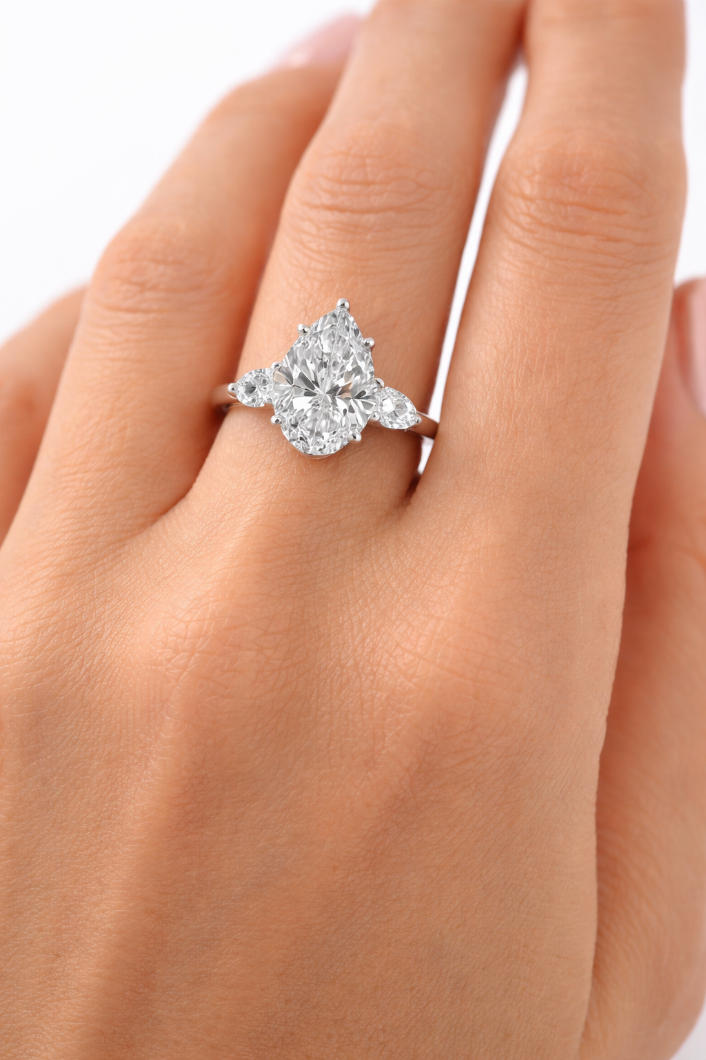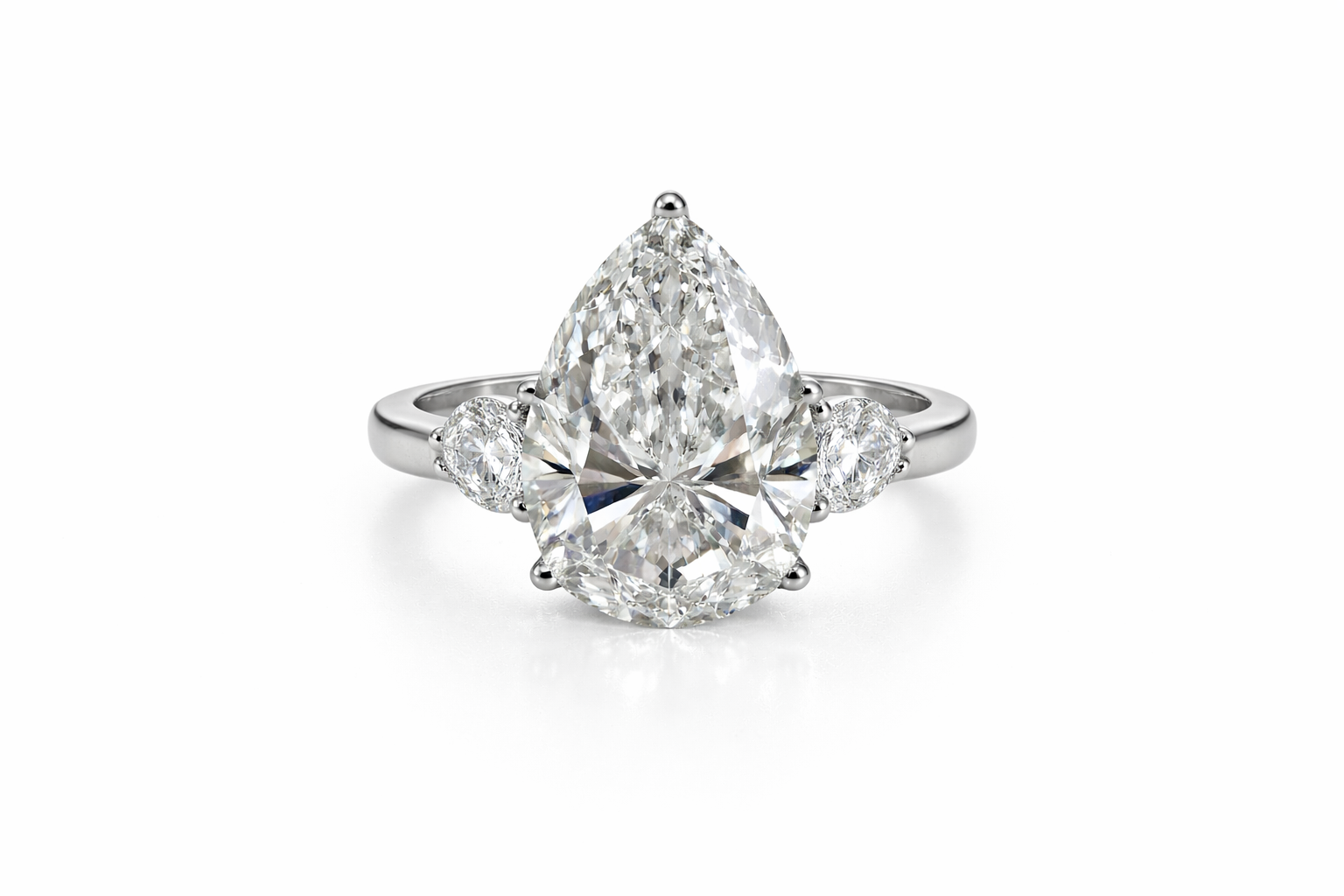 + 2 diamanti laterali taglio pera da 1,08 ct Colore E purezza vvs2