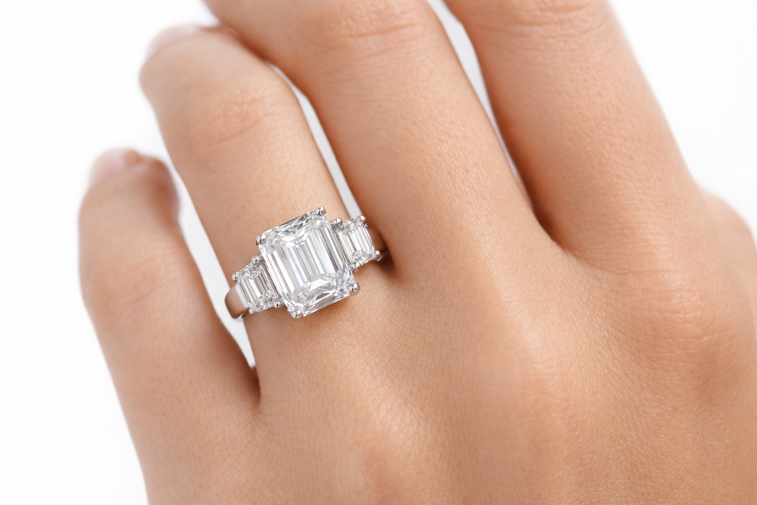 Anello in oro bianco 18 kt con diamante centrale lab grown taglio emerald da 7,33 ct