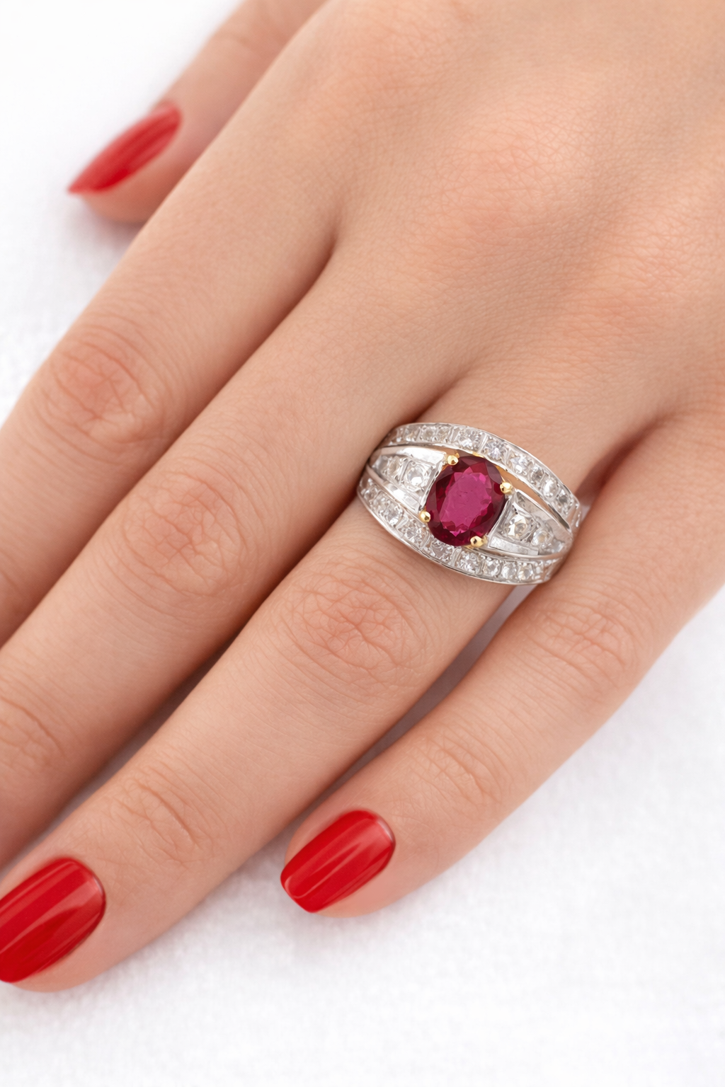 Anello oro giallo e bianco 18 kt a fascia con diamanti taglio brillante da 0,62ct tot