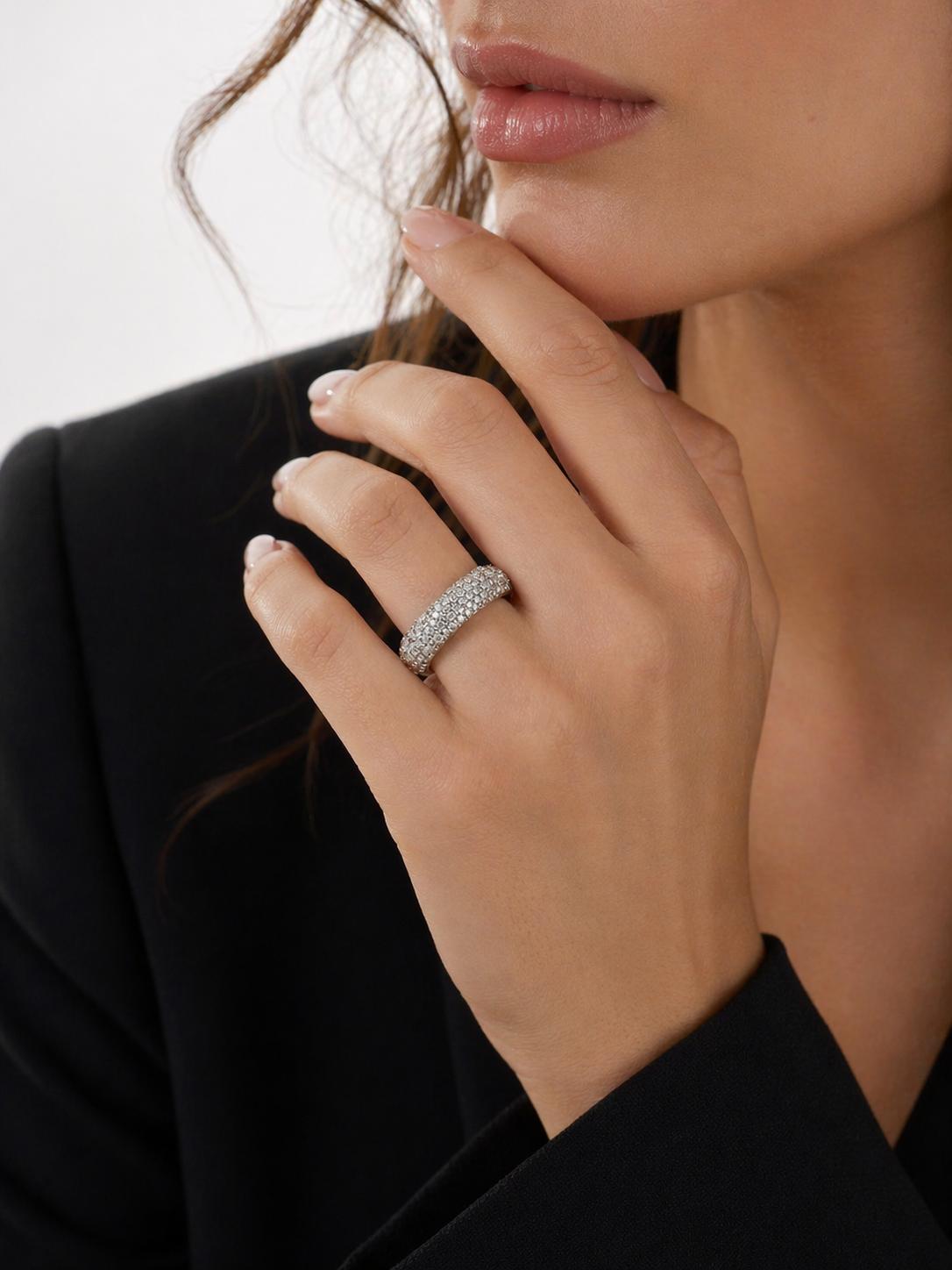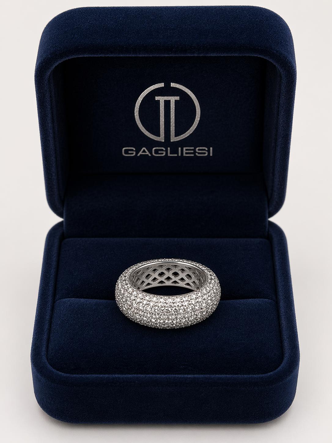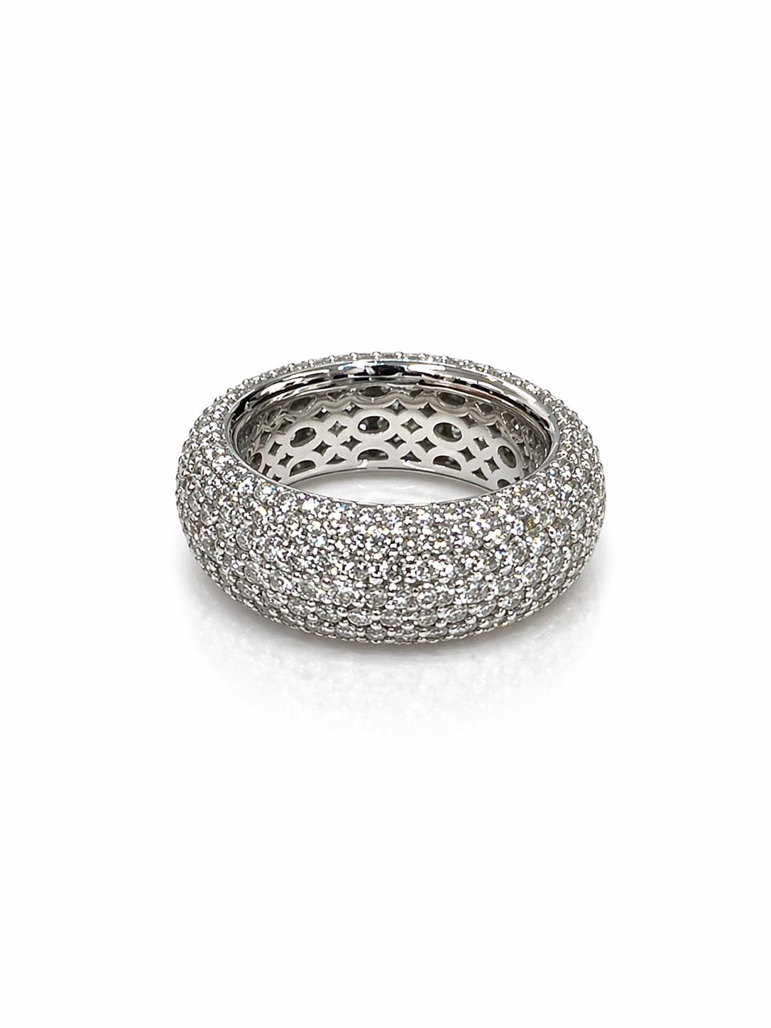Anello in oro bianco 18 kt fascia tempestata di diamanti taglio brillante da 4,74ct