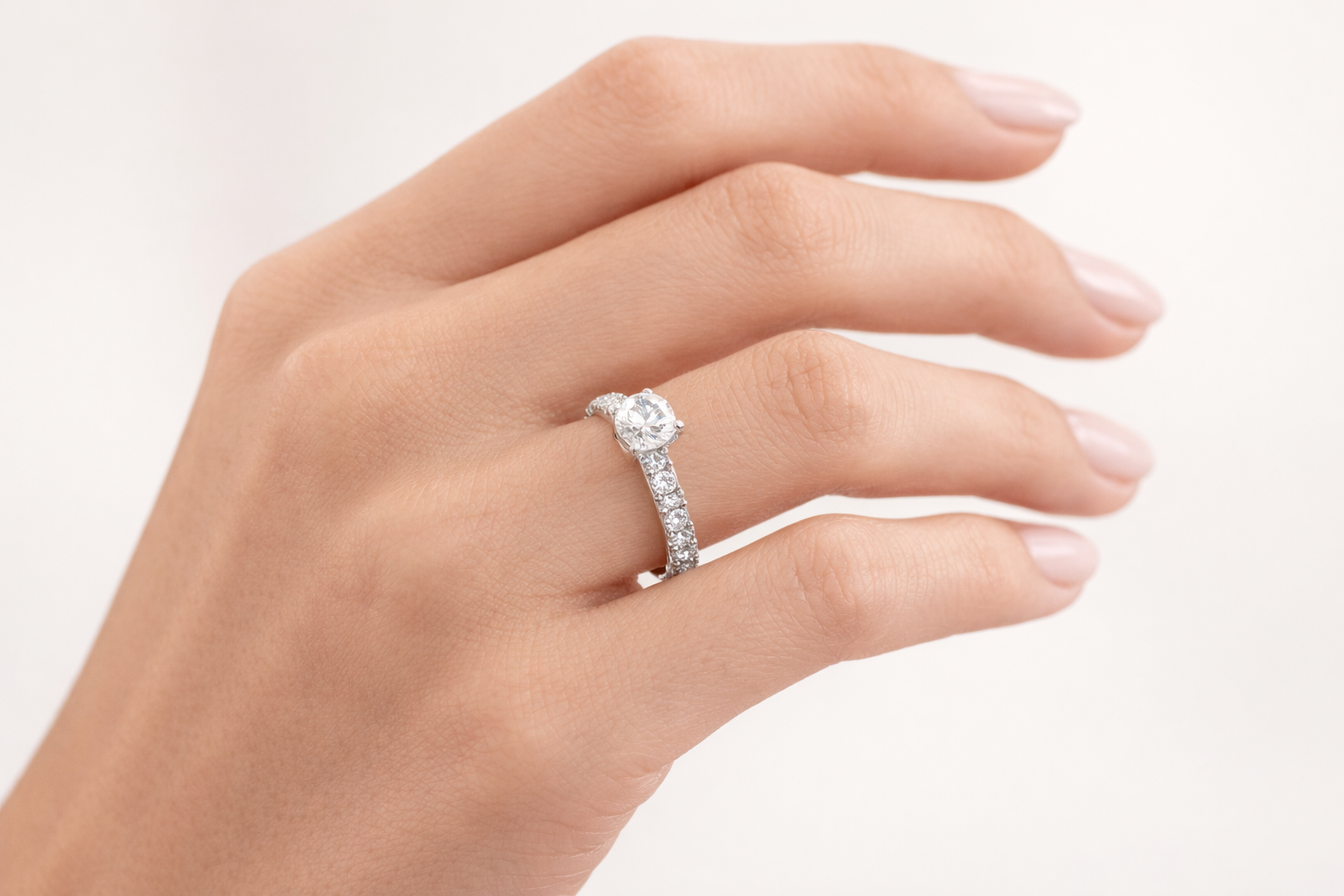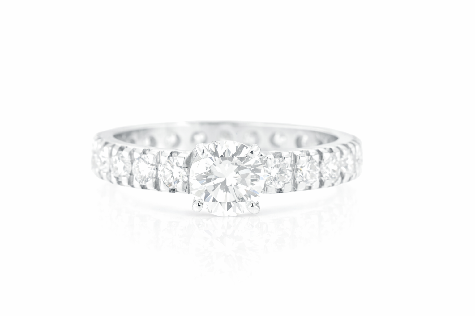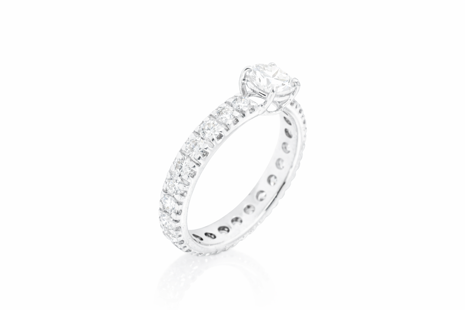 Anello solitario, eternity oro bianco con diamante centrale da 0,72ct