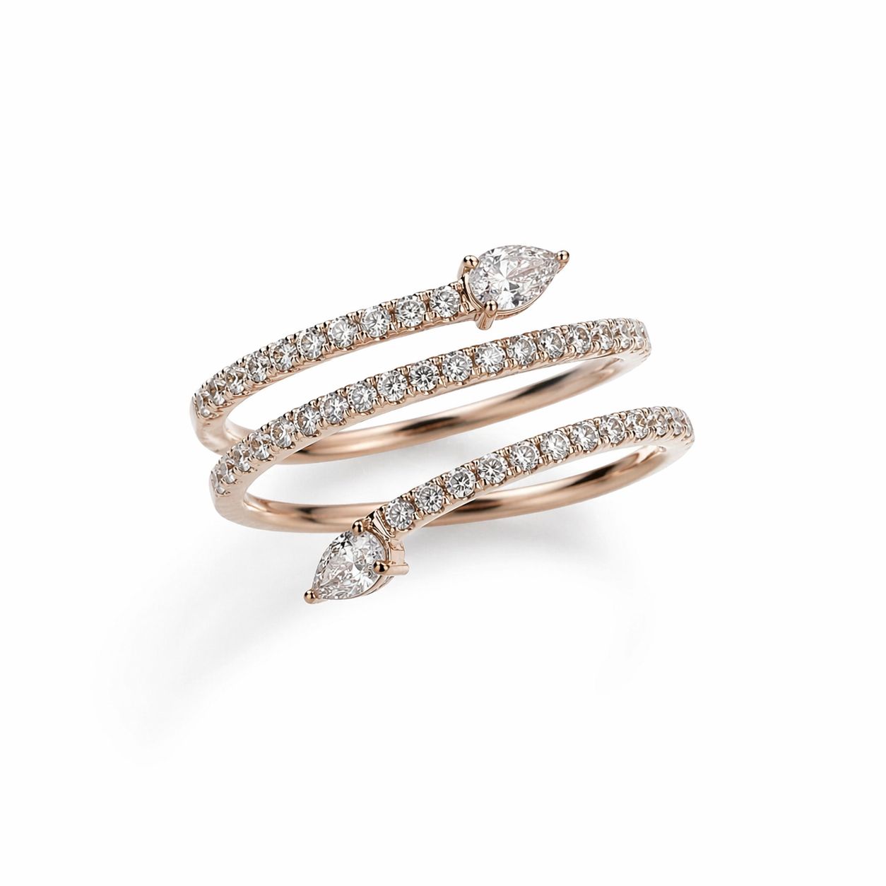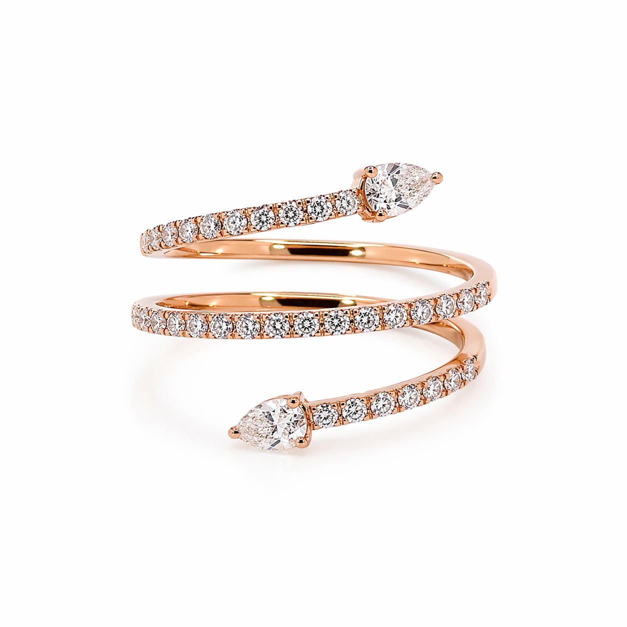 Anello in oro rosa 18 kt stile serpente con 02 diamanti taglio pera e diamanti taglio brillante