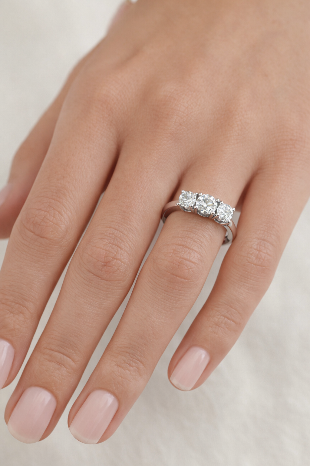 Anello trilogy in oro bianco 18 kt con 03 diamanti taglio brillante