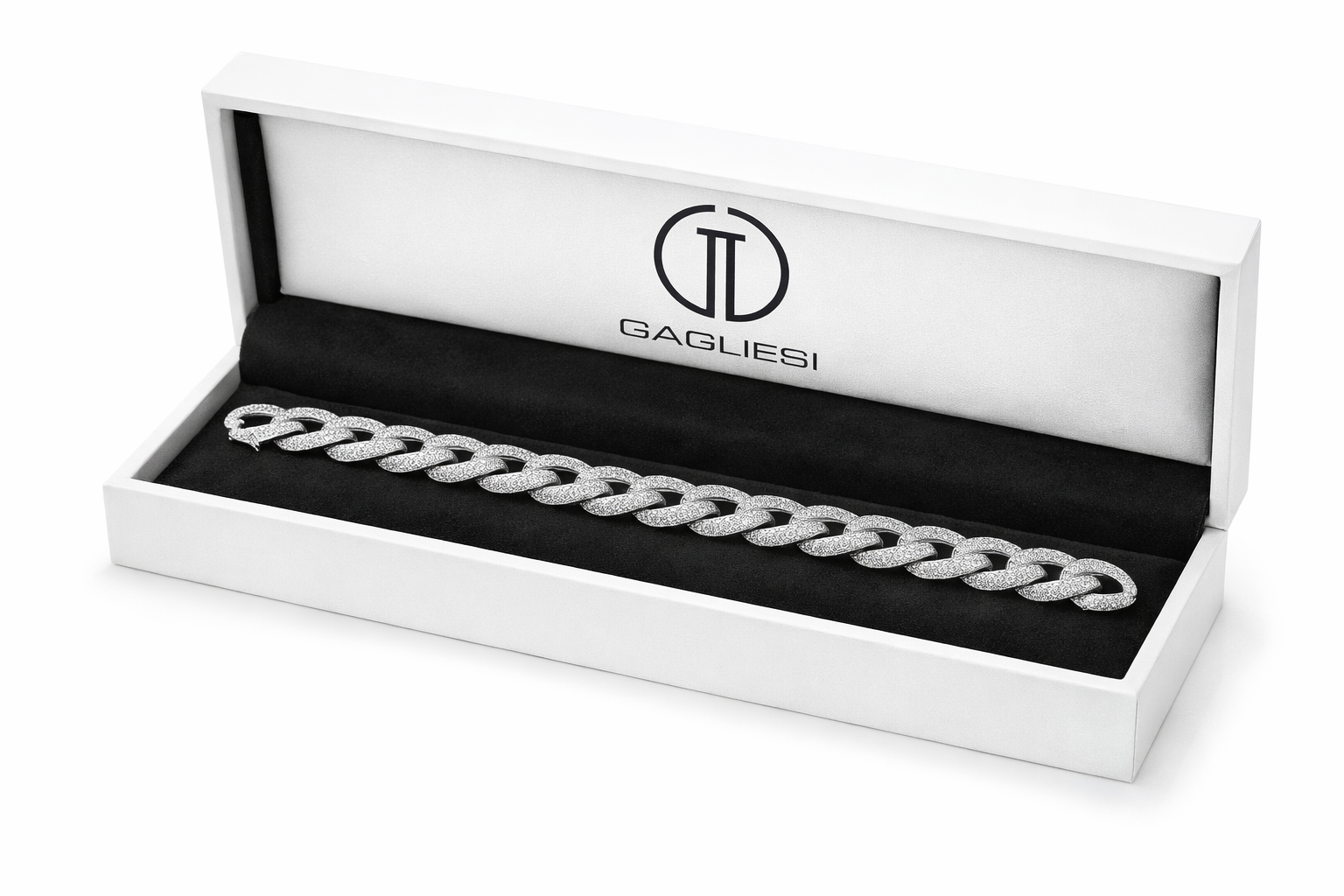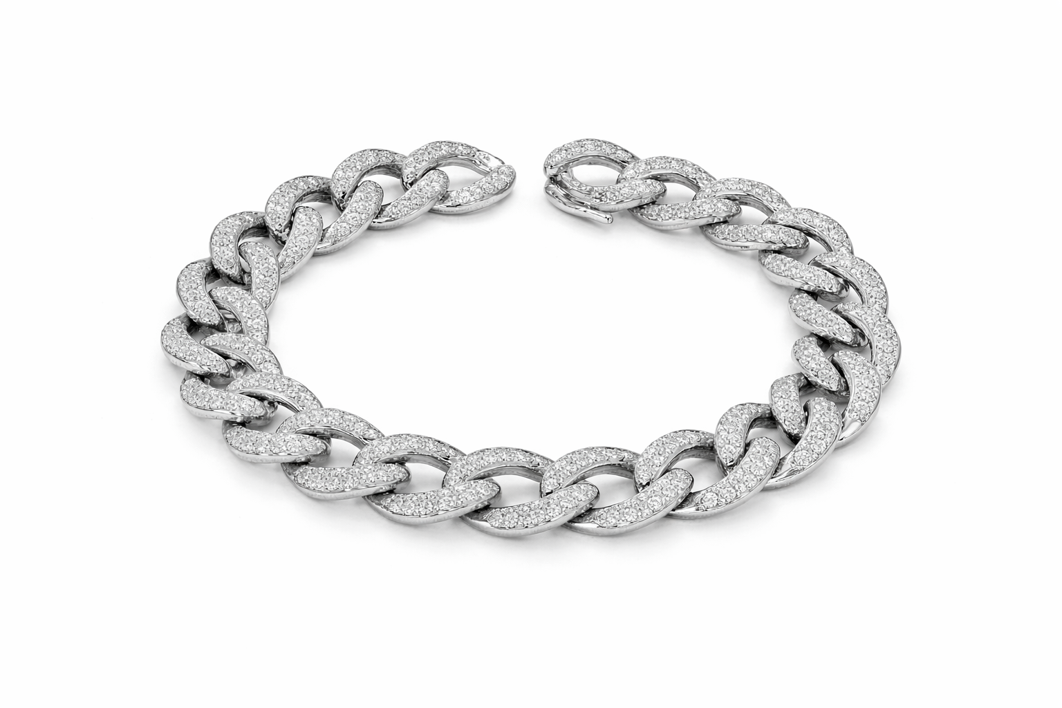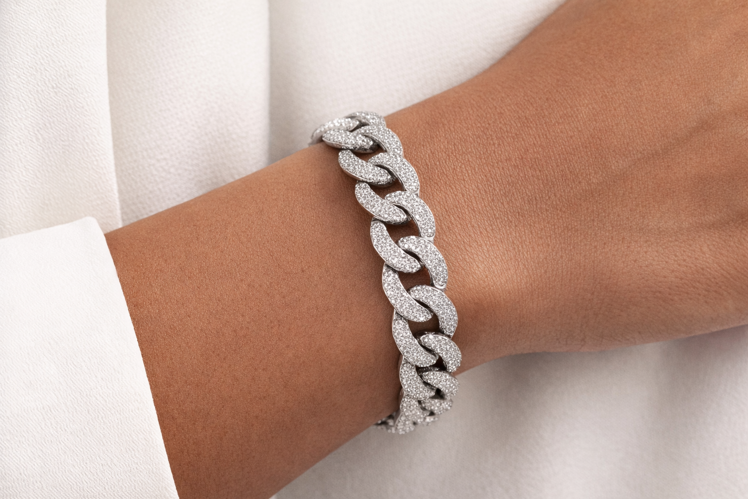 Bracciale a catena in oro bianco 18 kt tempestato di diamanti taglio brillante