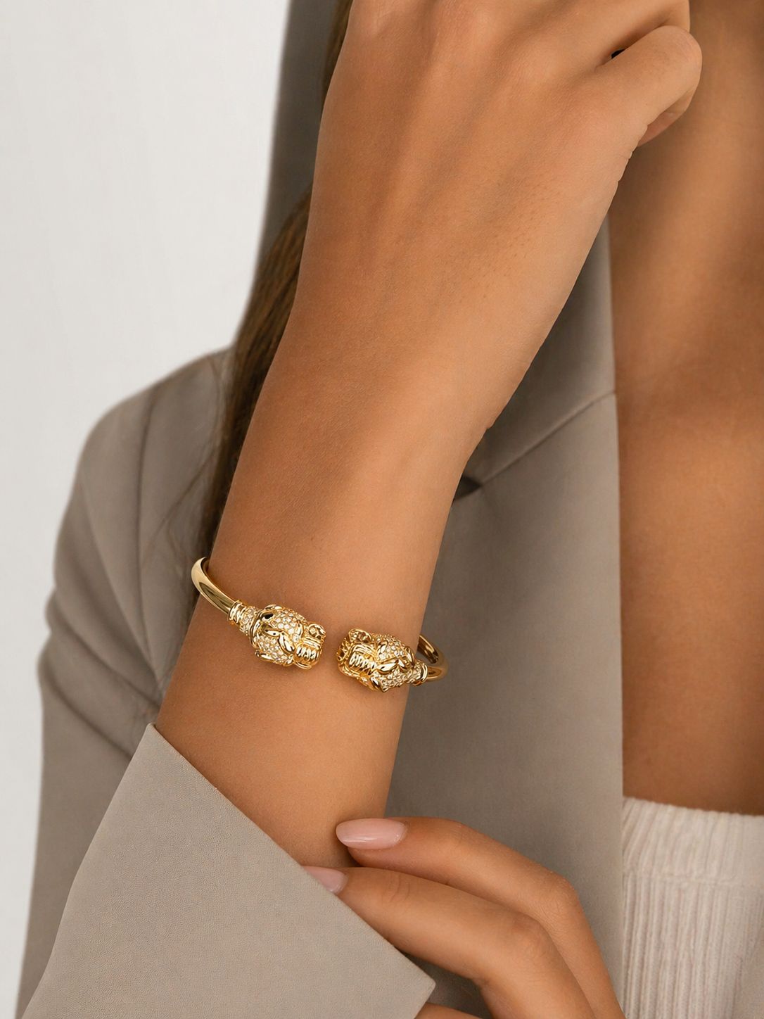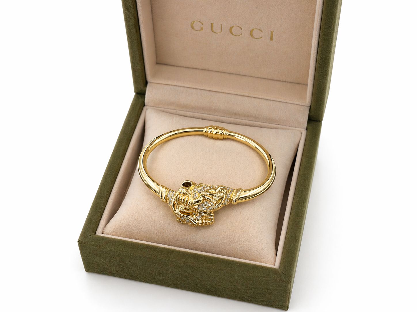Bracciale GUCCI rigido in oro giallo 18 kt con tigri e diamanti