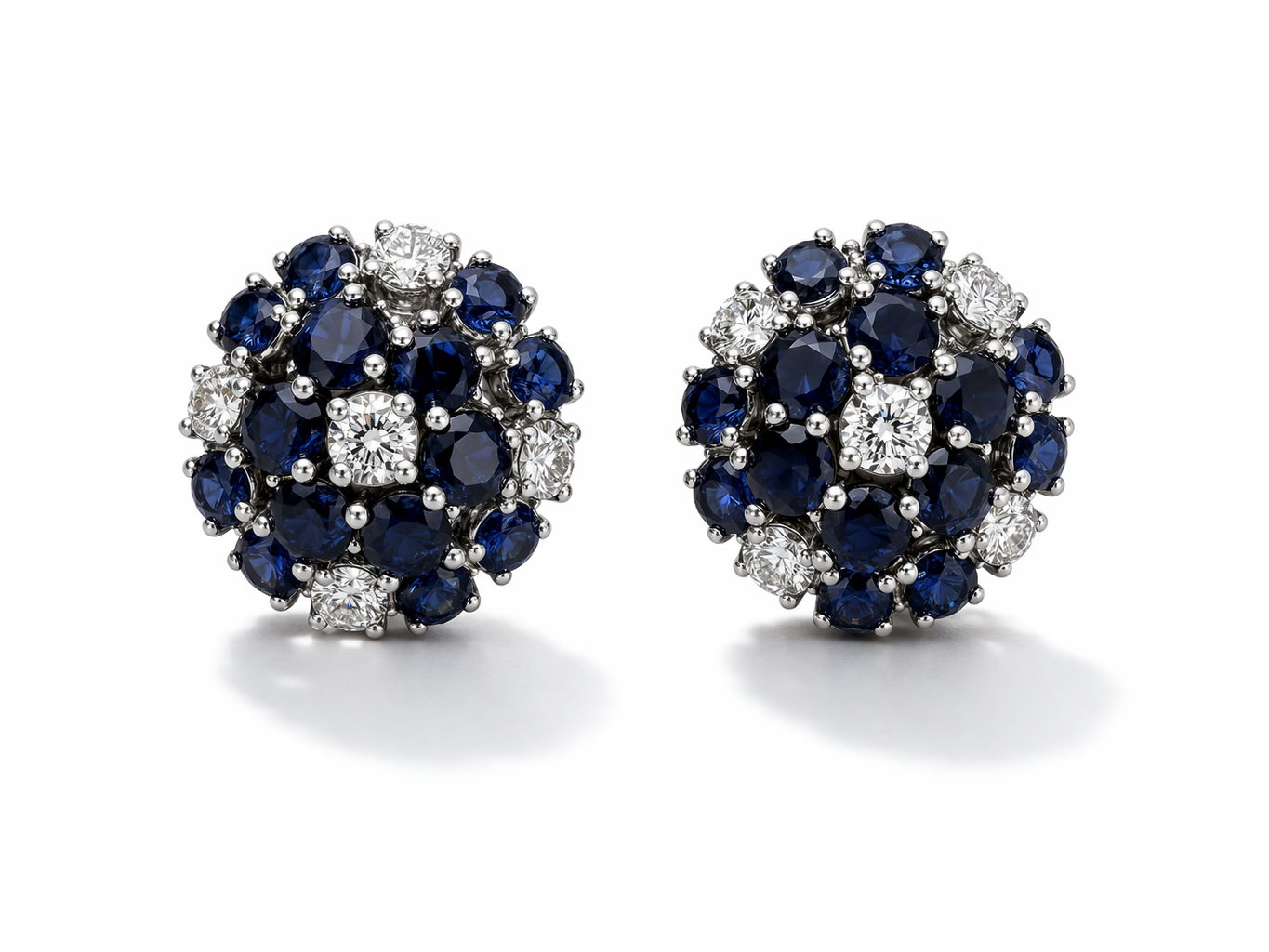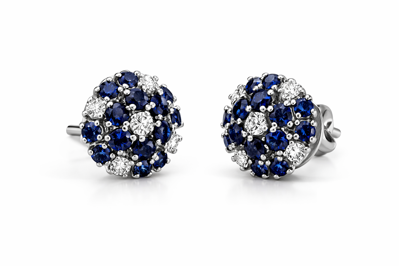 Orecchini a bottone in oro bianco 18 kt con zaffiri da 1,60ct tot