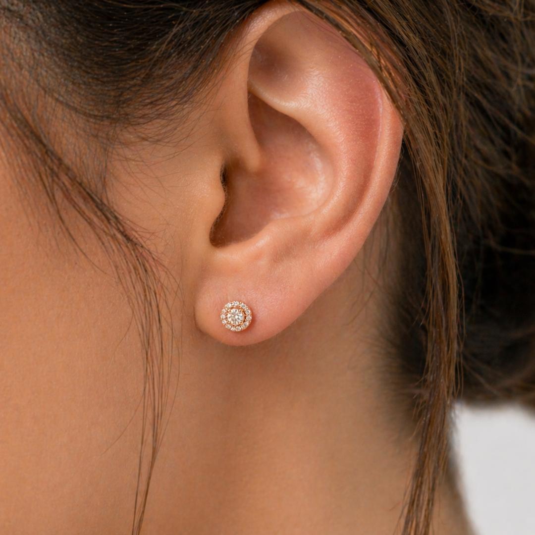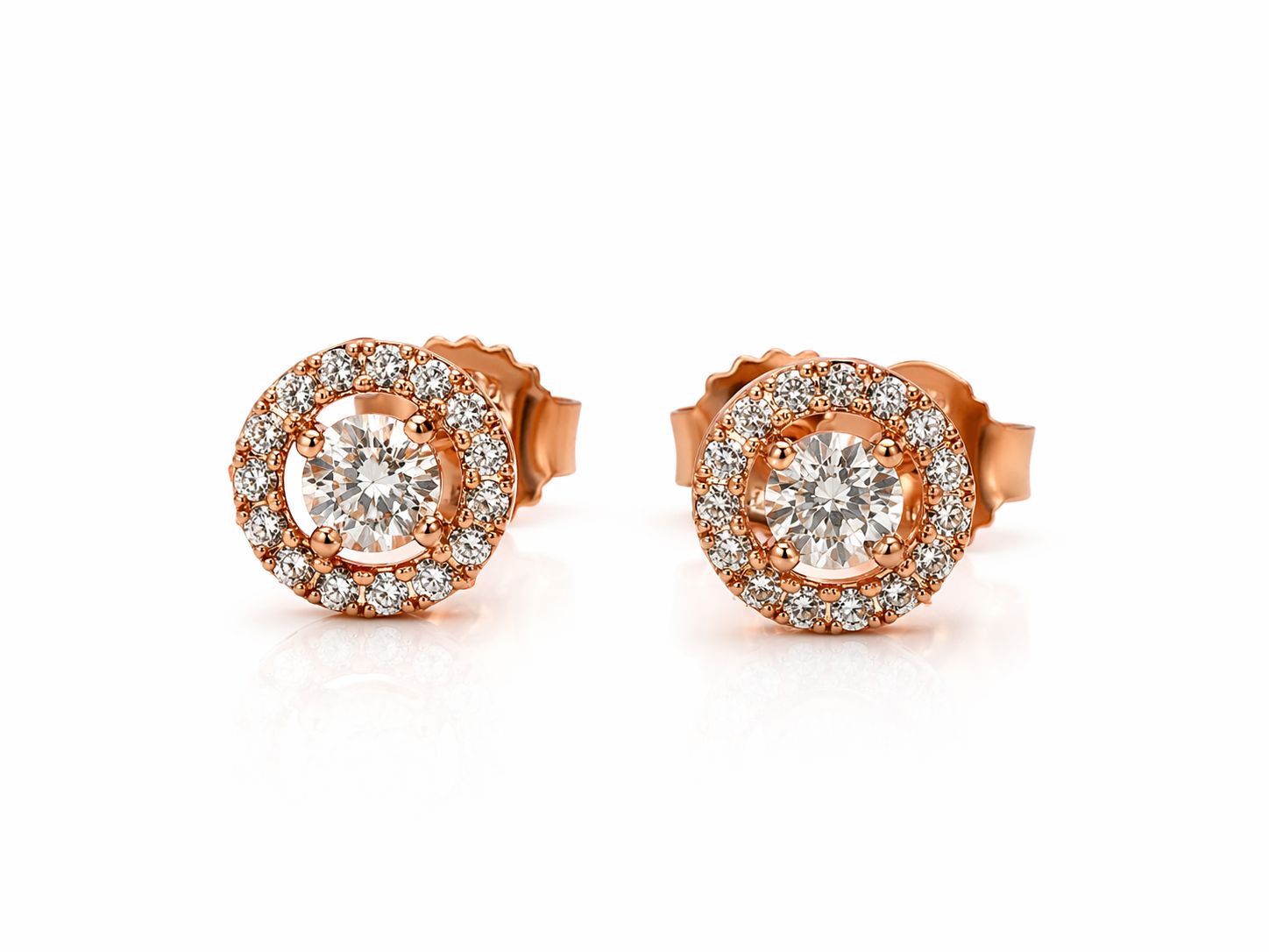 Orecchini in oro rosa 18 kt montatura tipo bottone con diamanti taglio brillante da 0,37ct tot